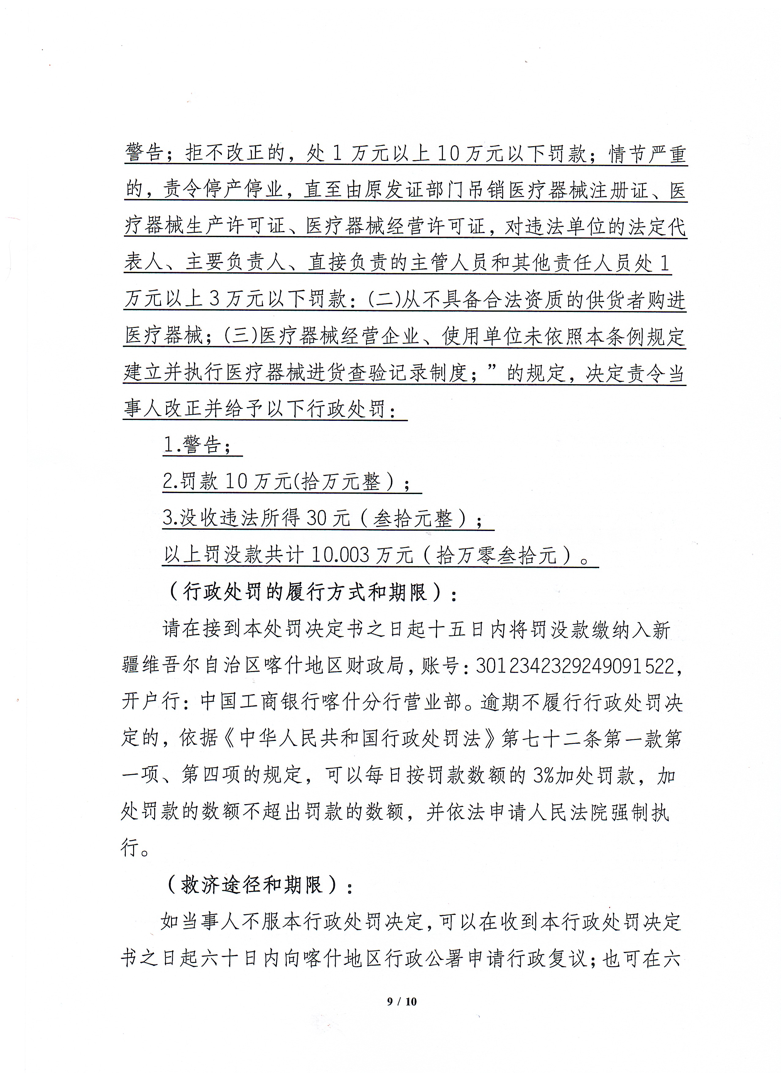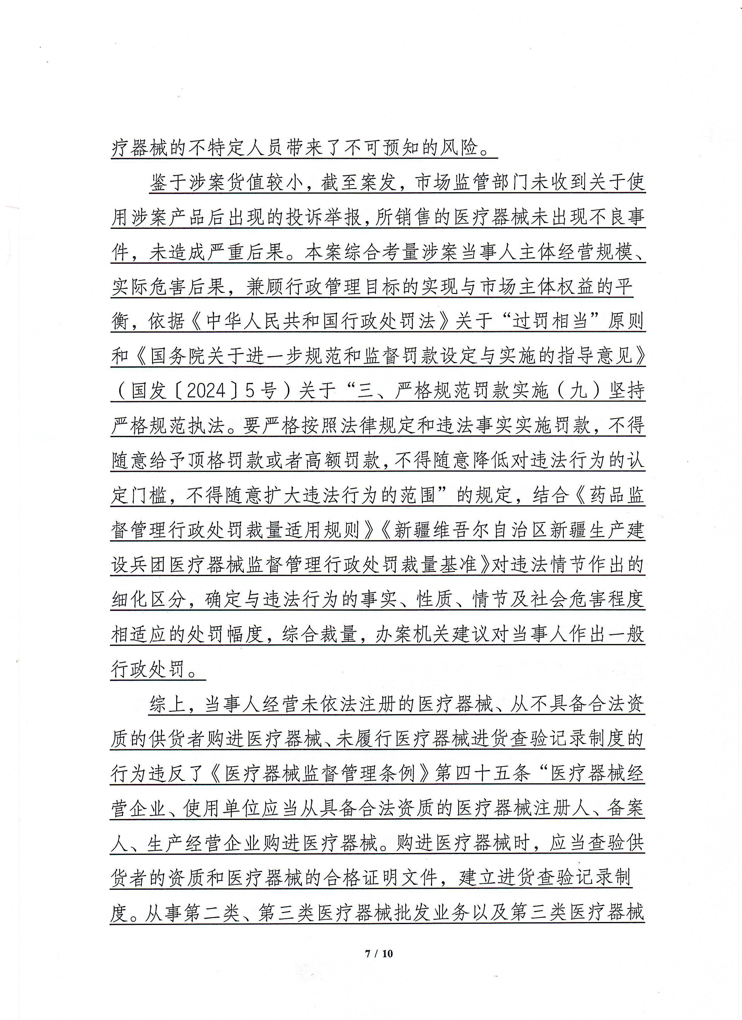 处罚事由:未依法注册的医疗器械、从不具备合法资质的供货者购进医疗器械、未履行医疗器械进货查验记录制度 |