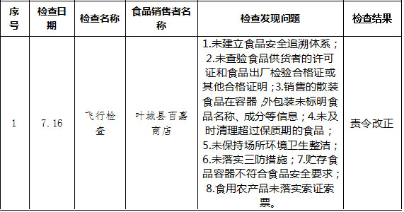 为进一步落实“四个最严”要求,强化食品安全风险隐患排查,督促食品销售者落实食品安全主体责任,2022年7月15日至16日,喀什地区市场监督管理局从各县市抽调业务骨干组成检查组,对2022年食品流通环节被检出多批次不合格问题样品的食品销售者开展飞行检查。