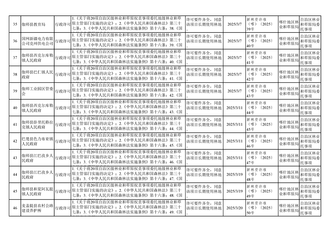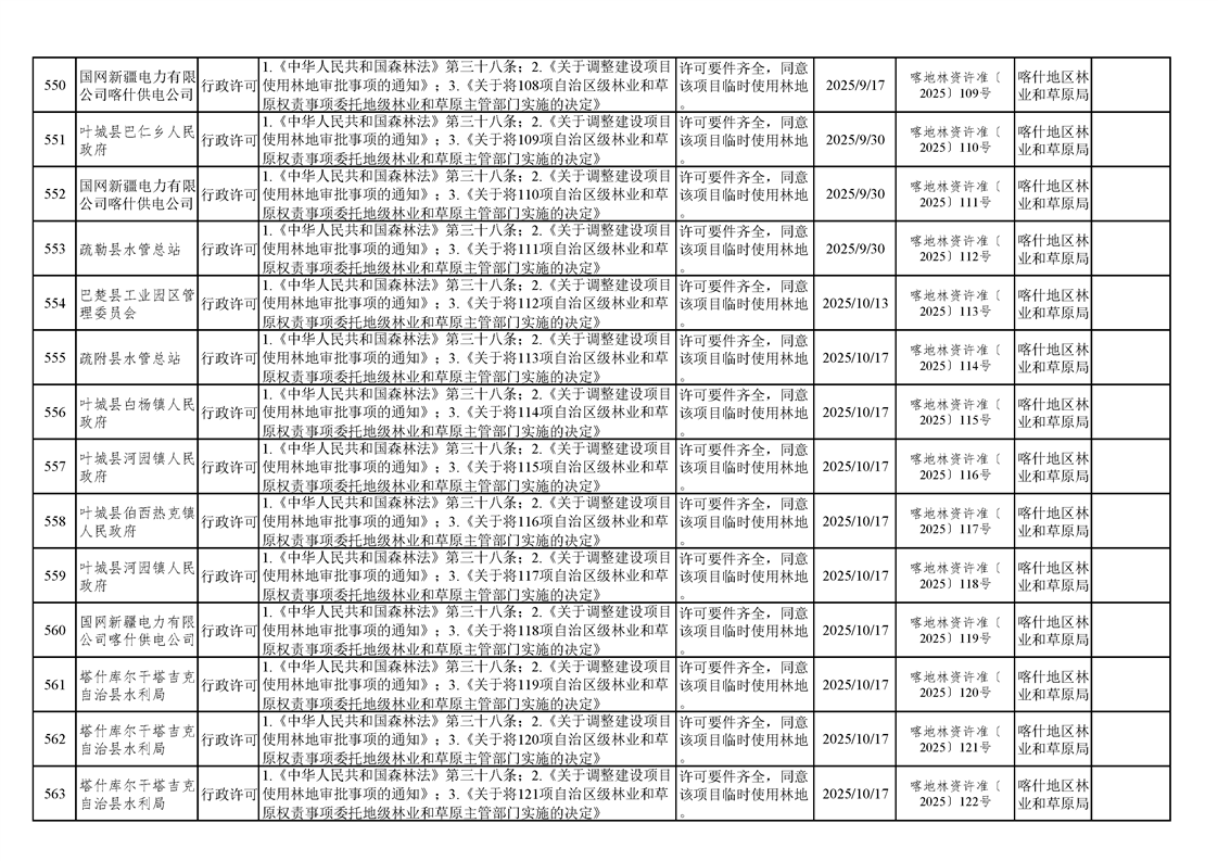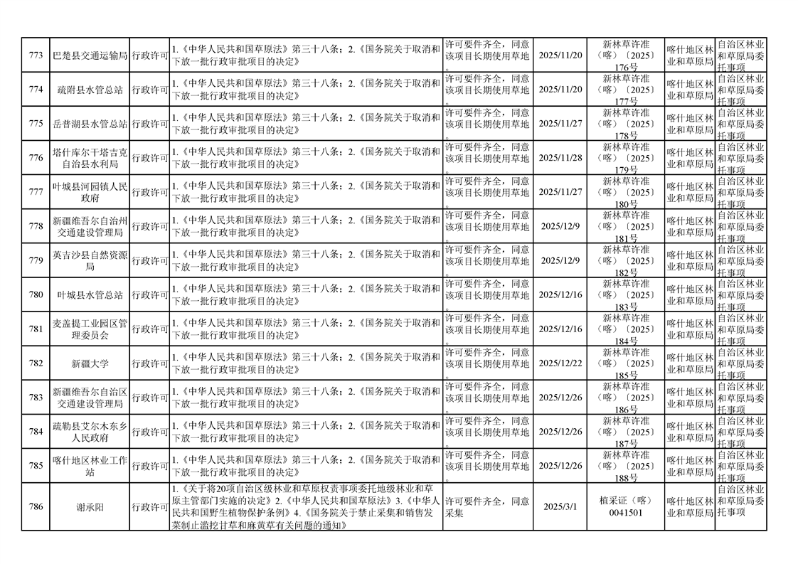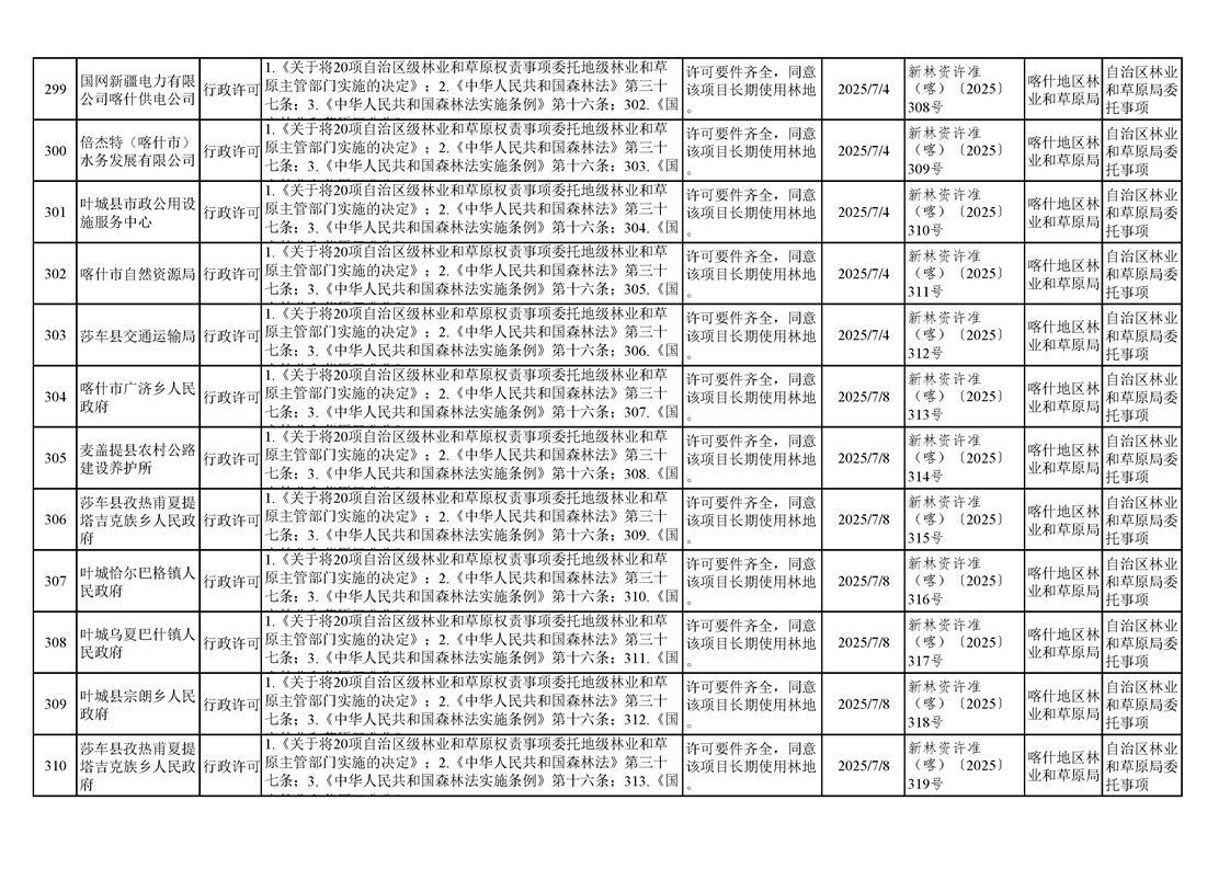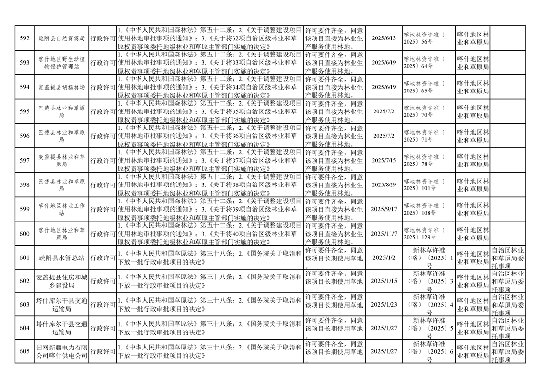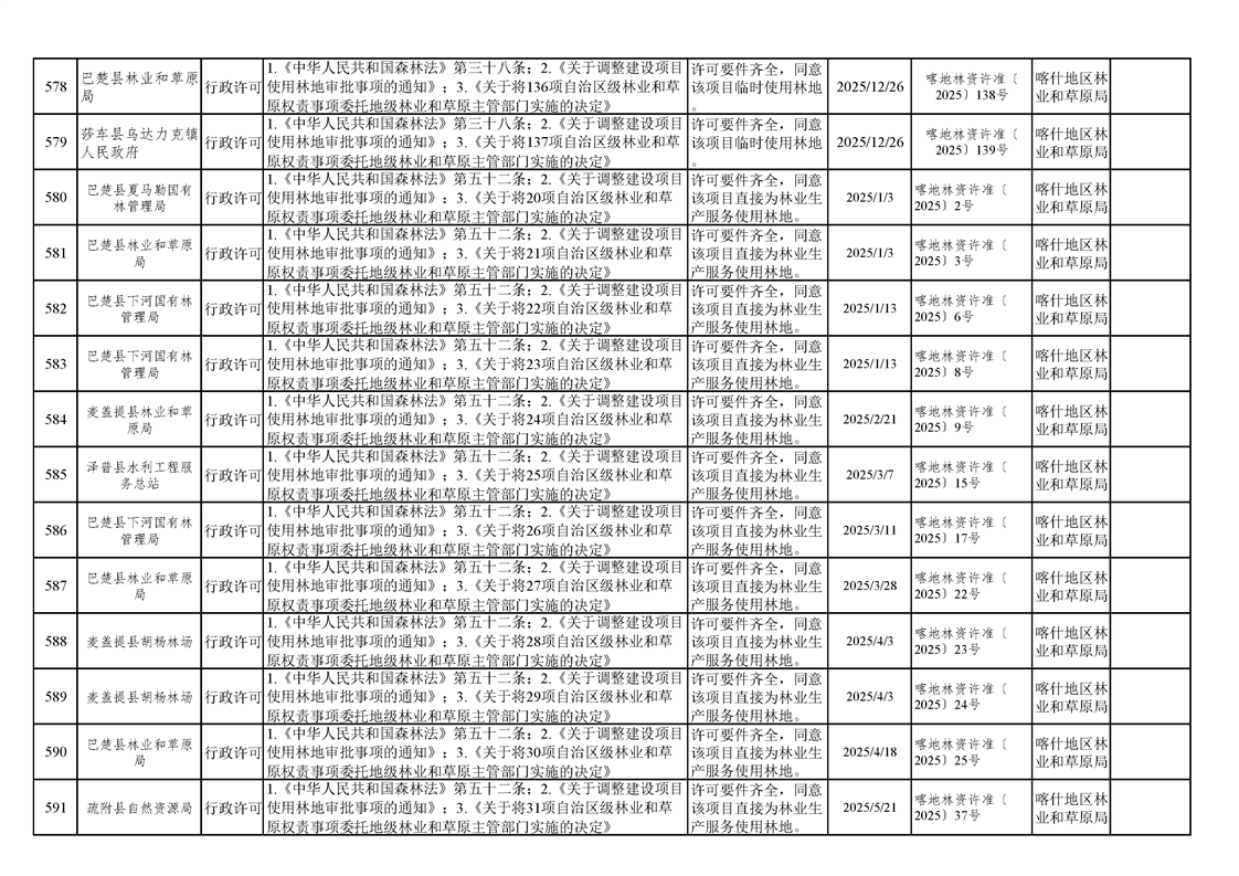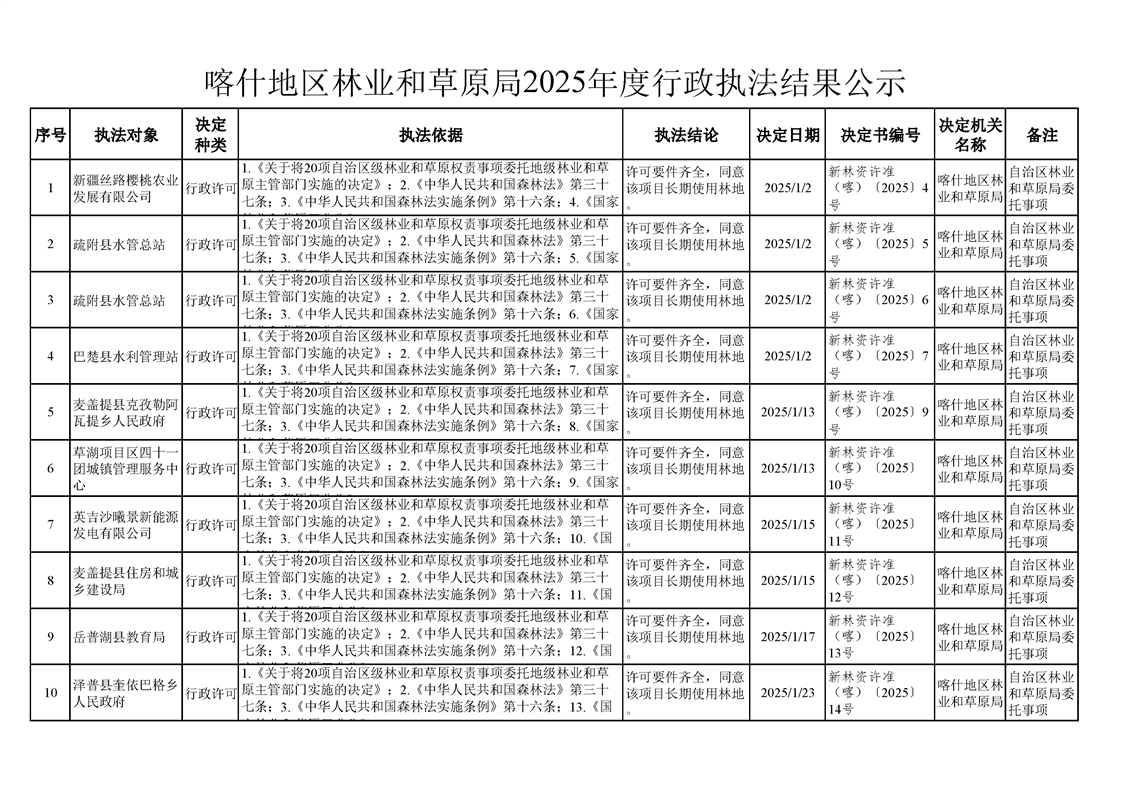 喀什地区林业和草原局 2025年度 行政执法 结果公示