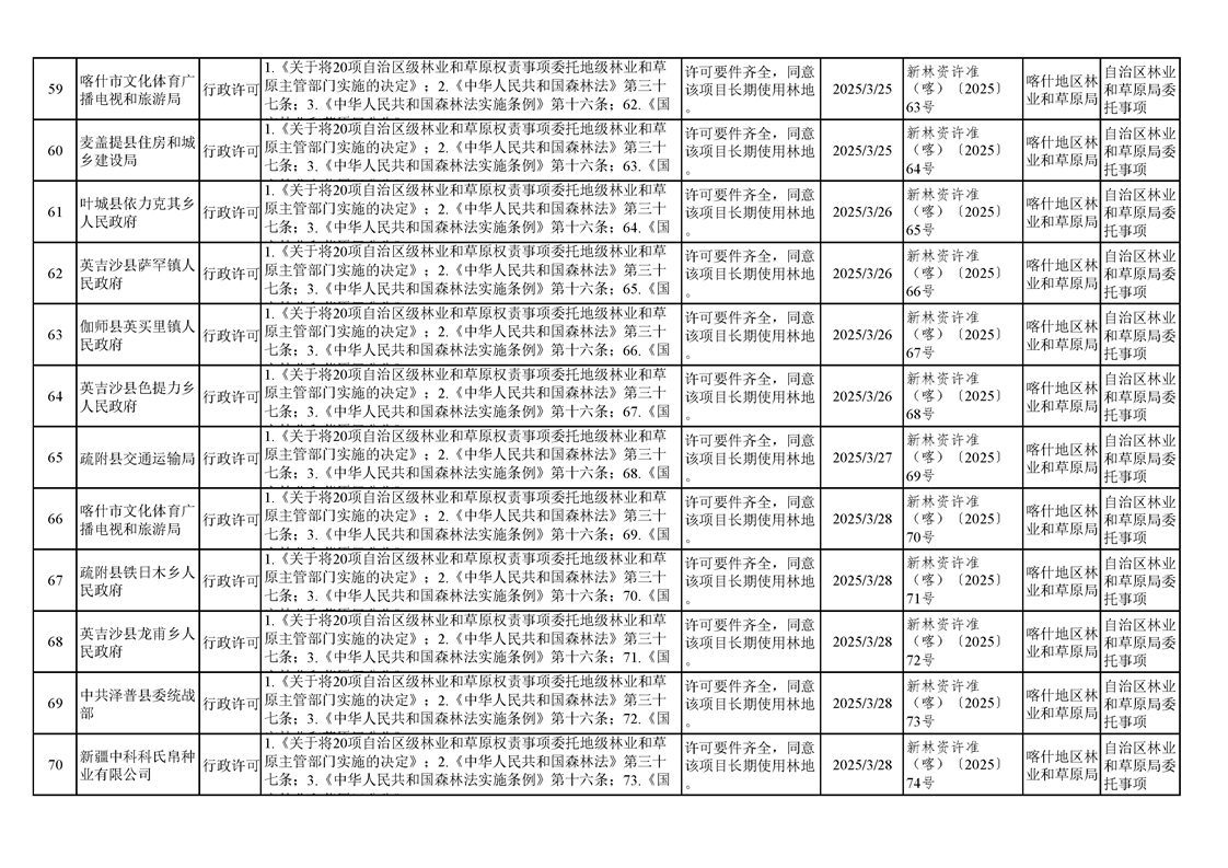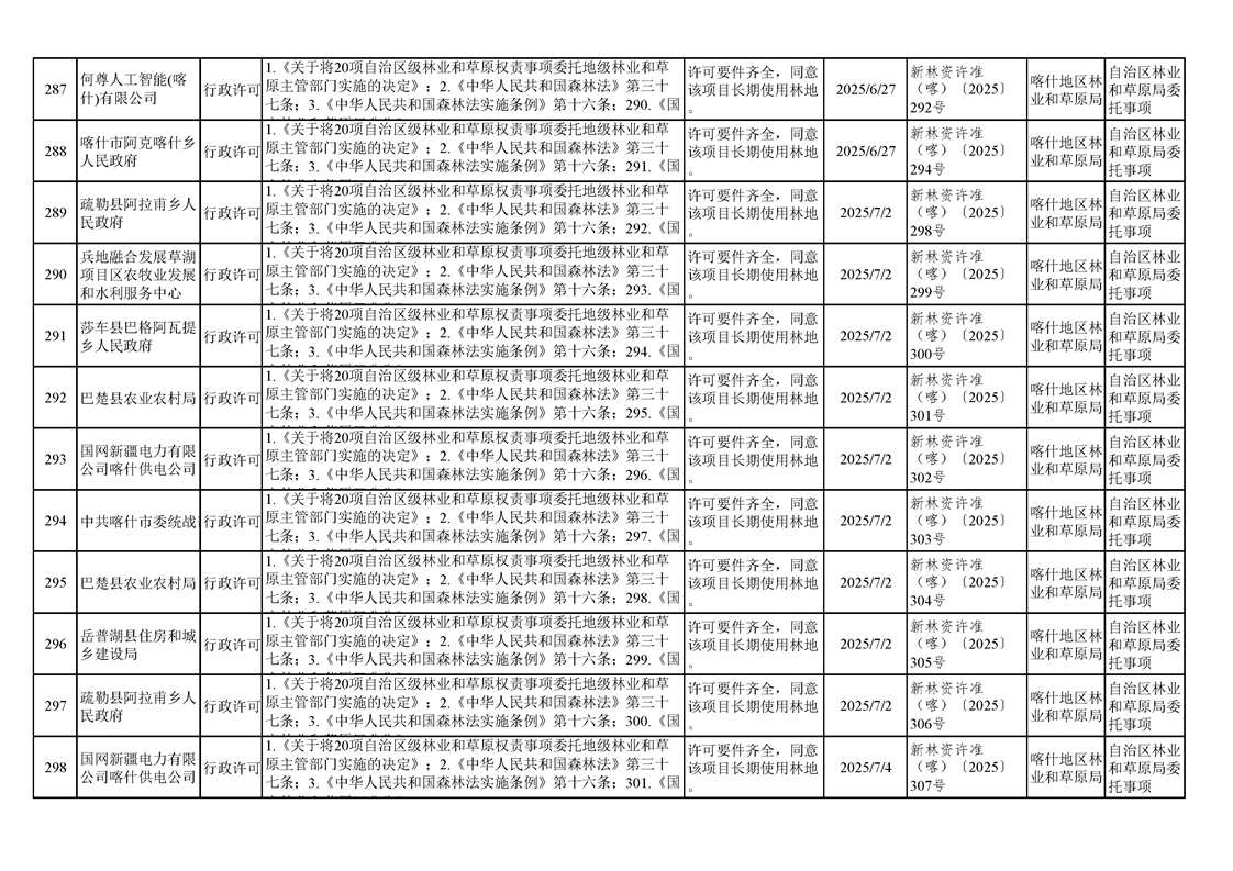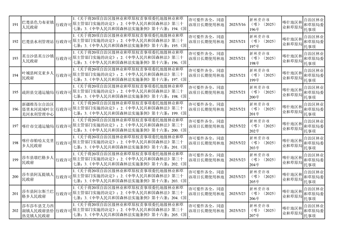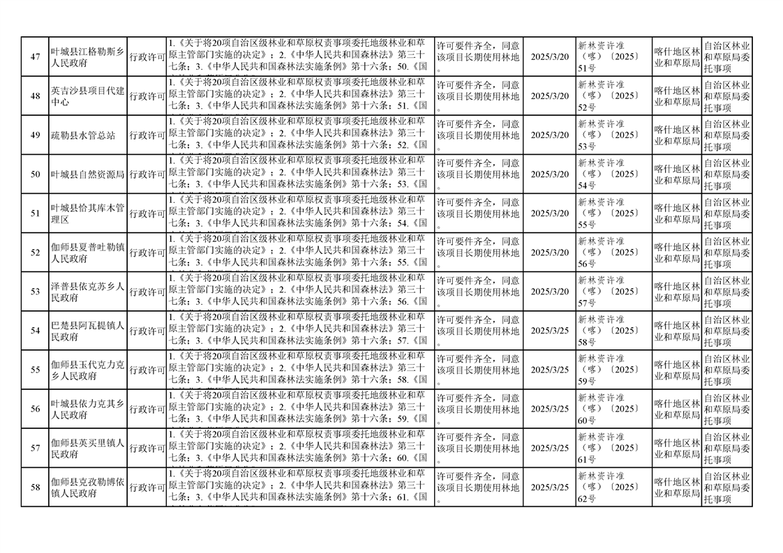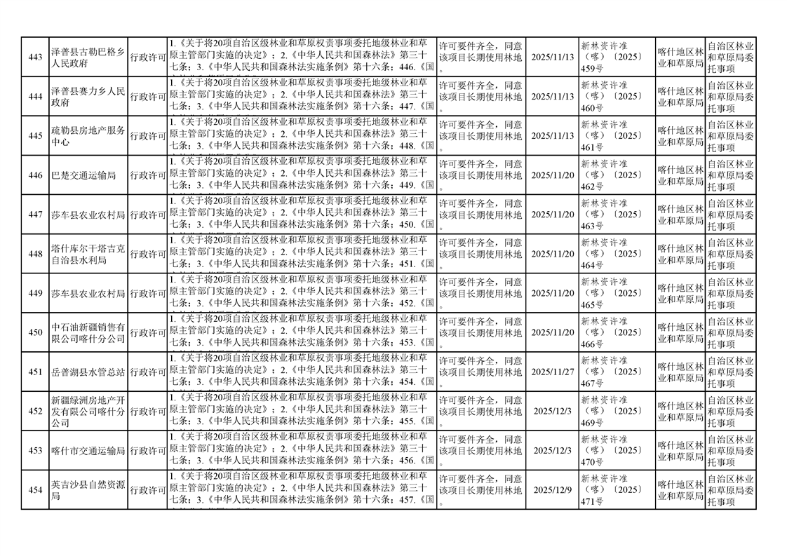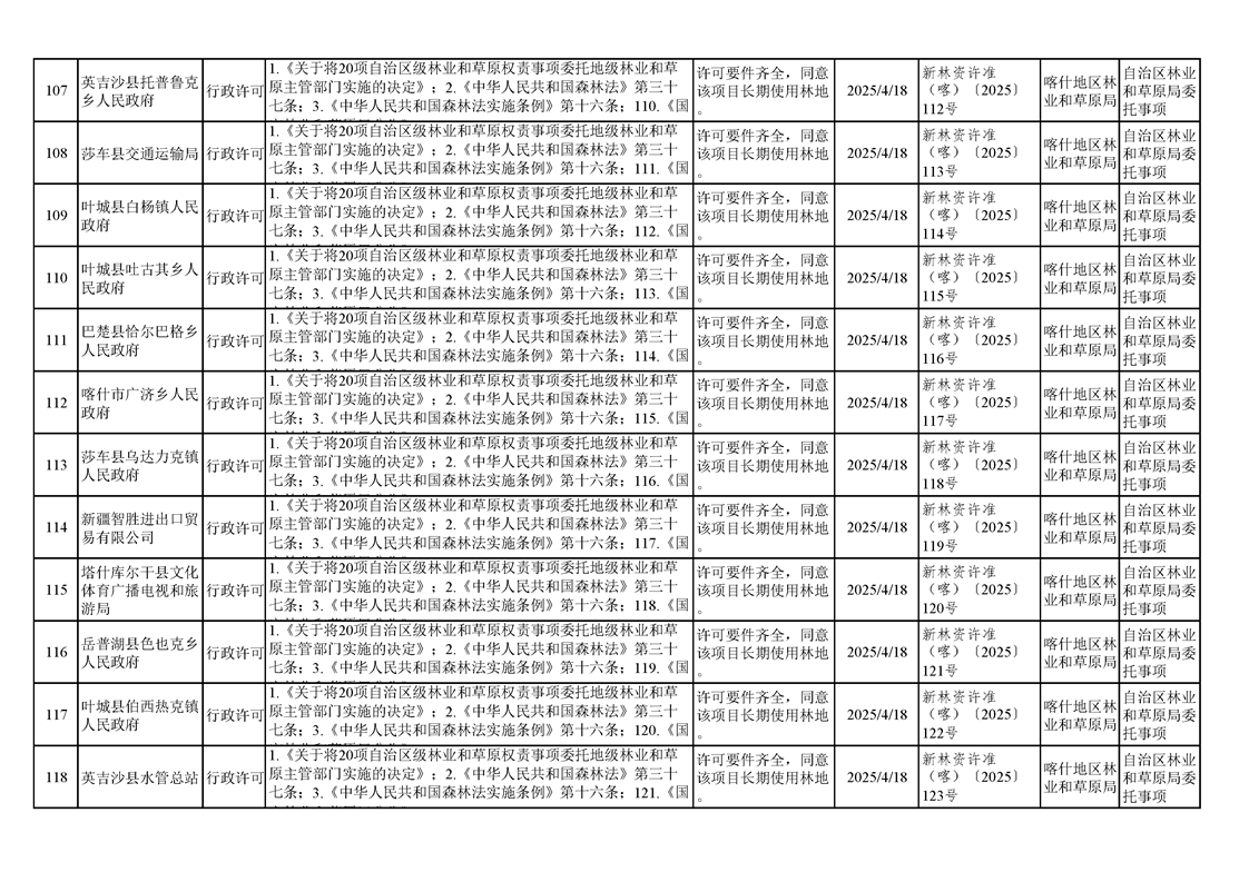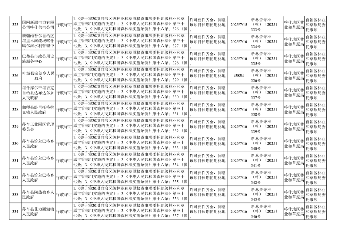 喀什地区林业和草原局 2025年度 行政执法 结果公示