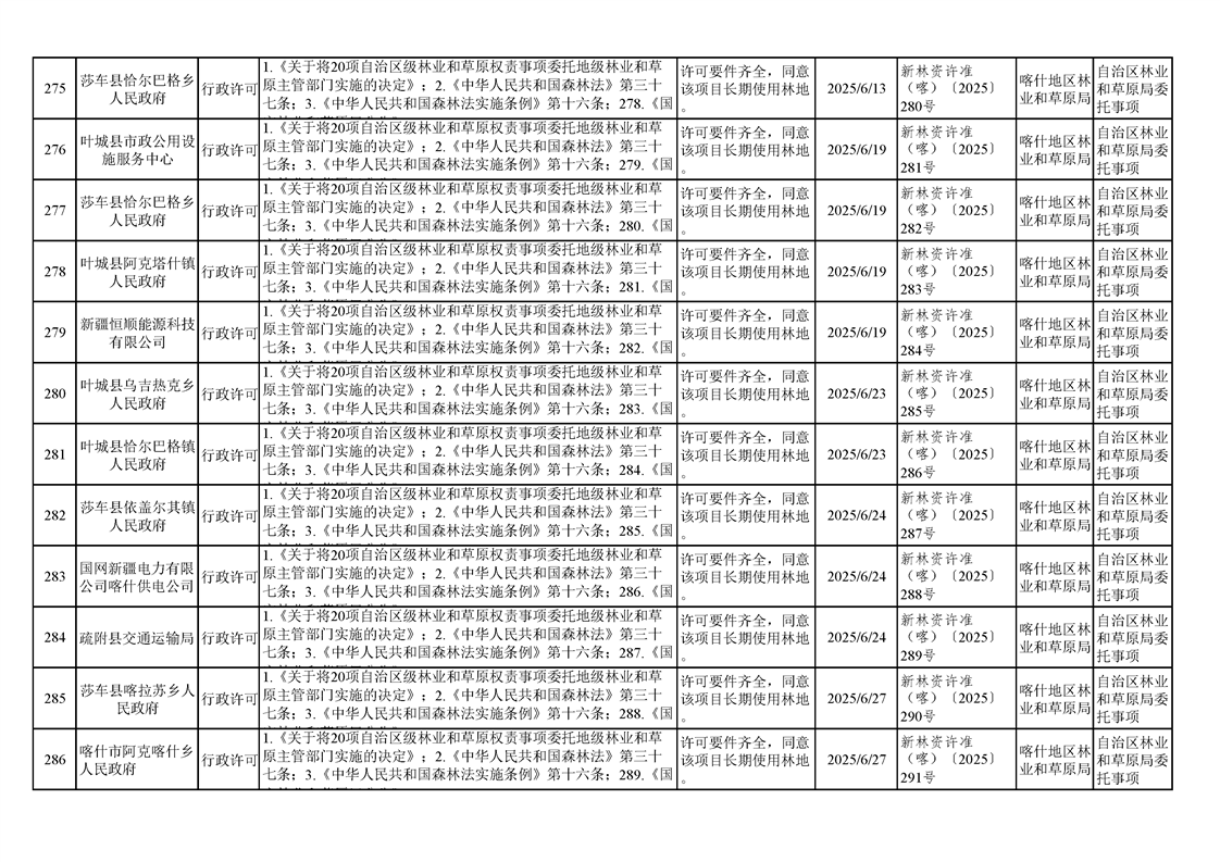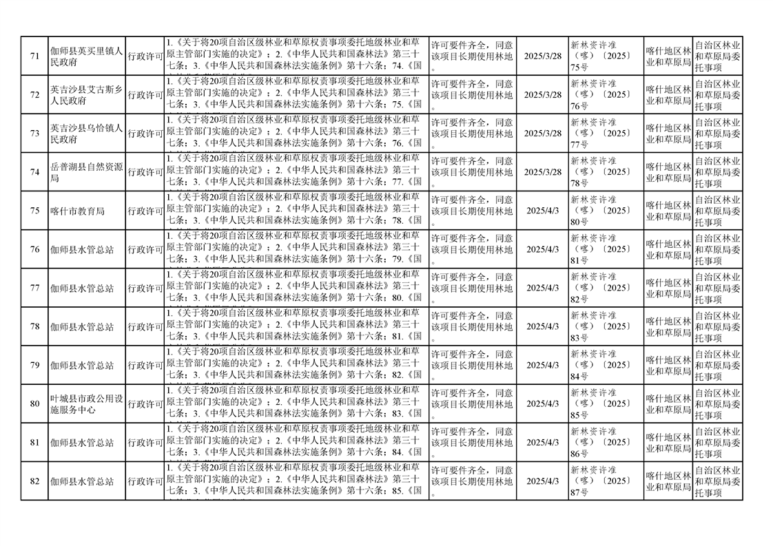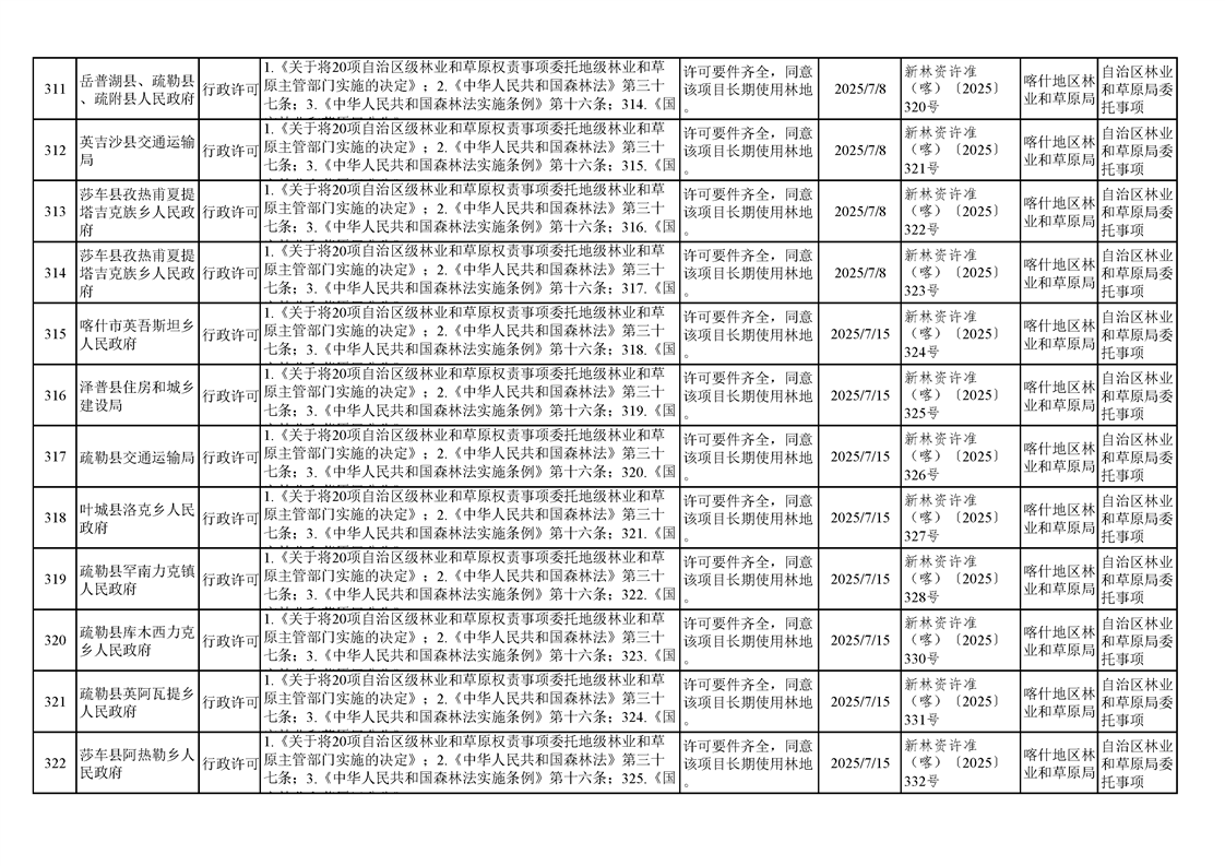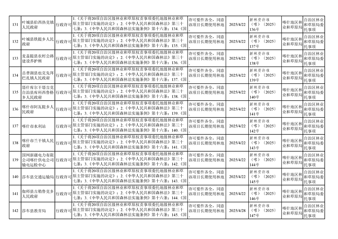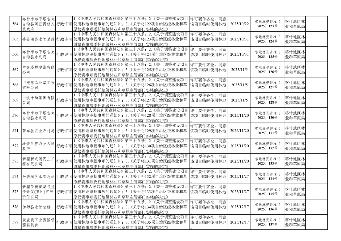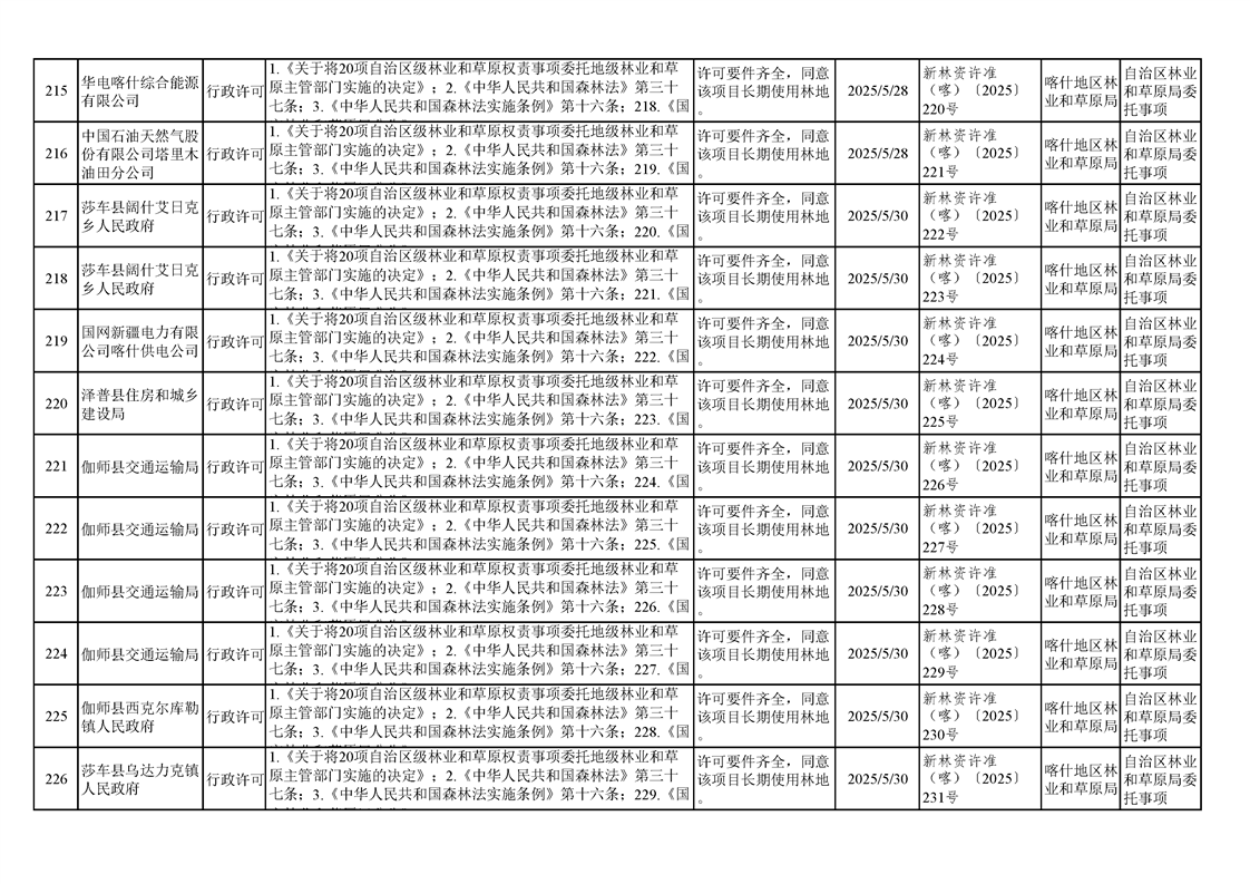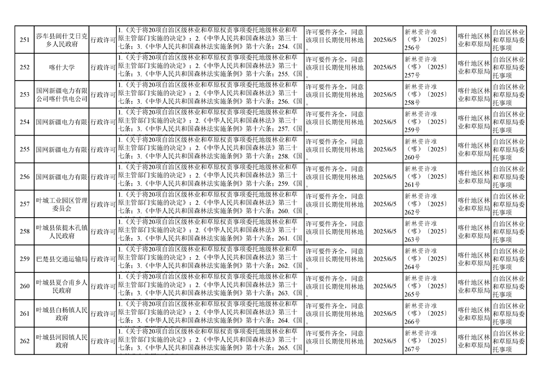 喀什地区林业和草原局 2025年度 行政执法 结果公示