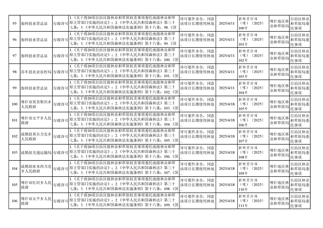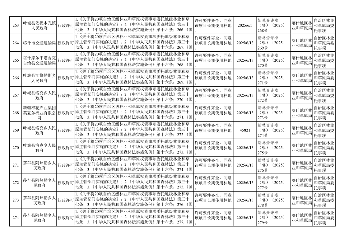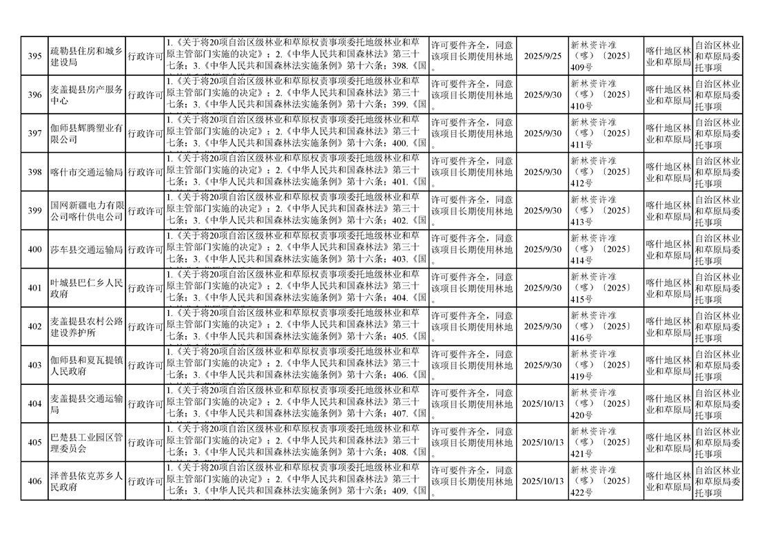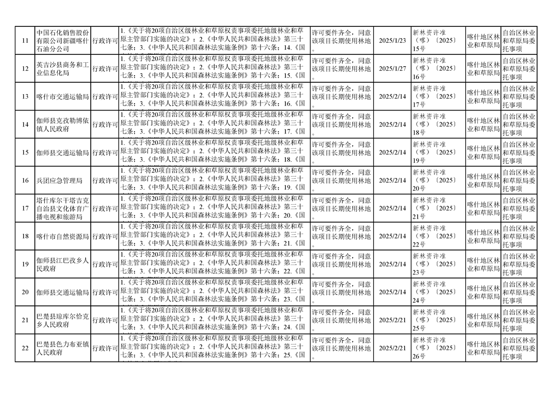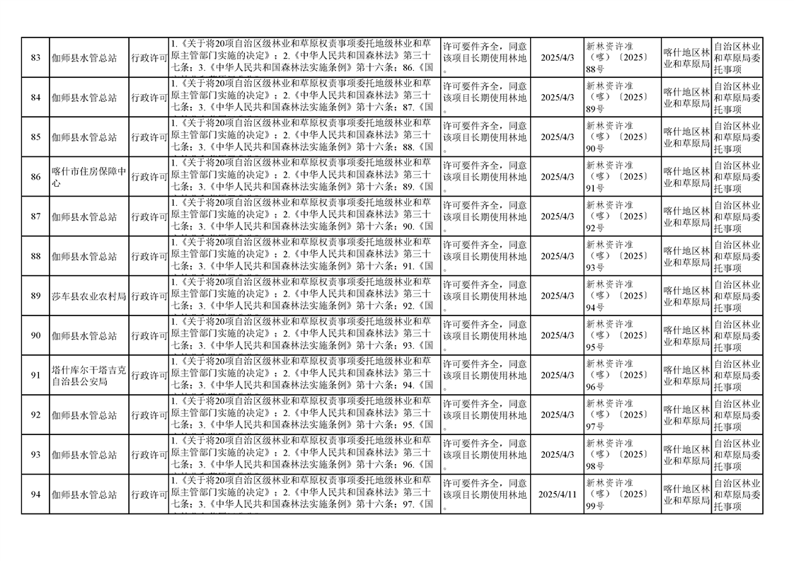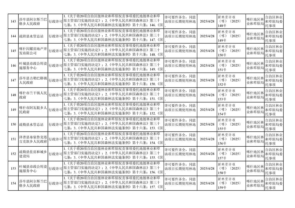 喀什地区林业和草原局 2025年度 行政执法 结果公示