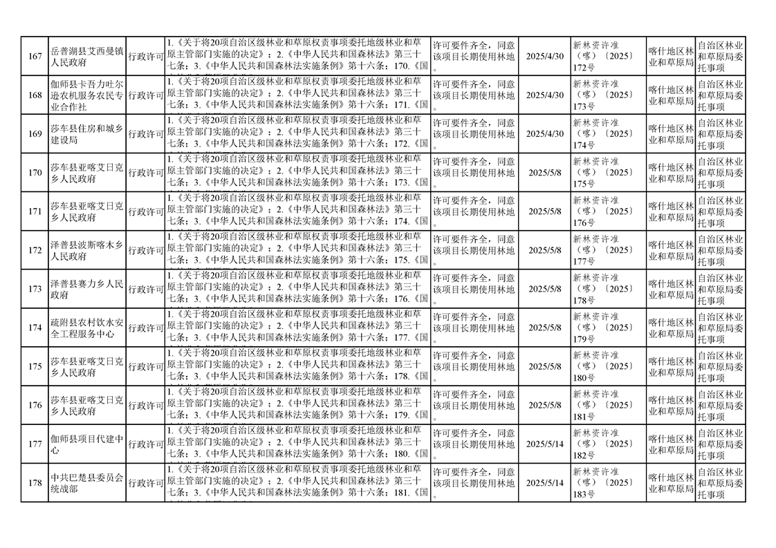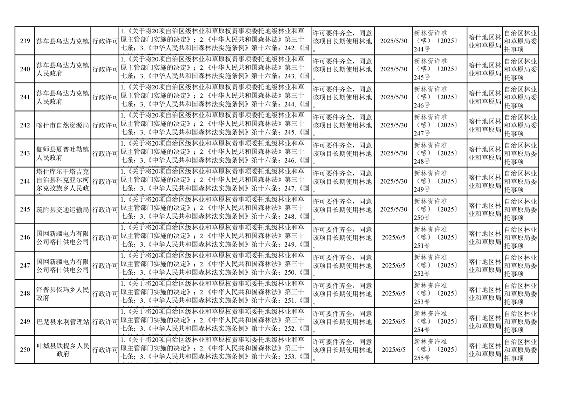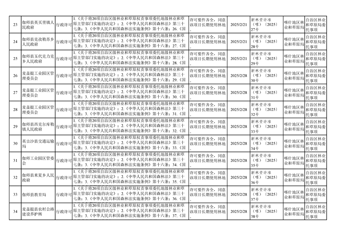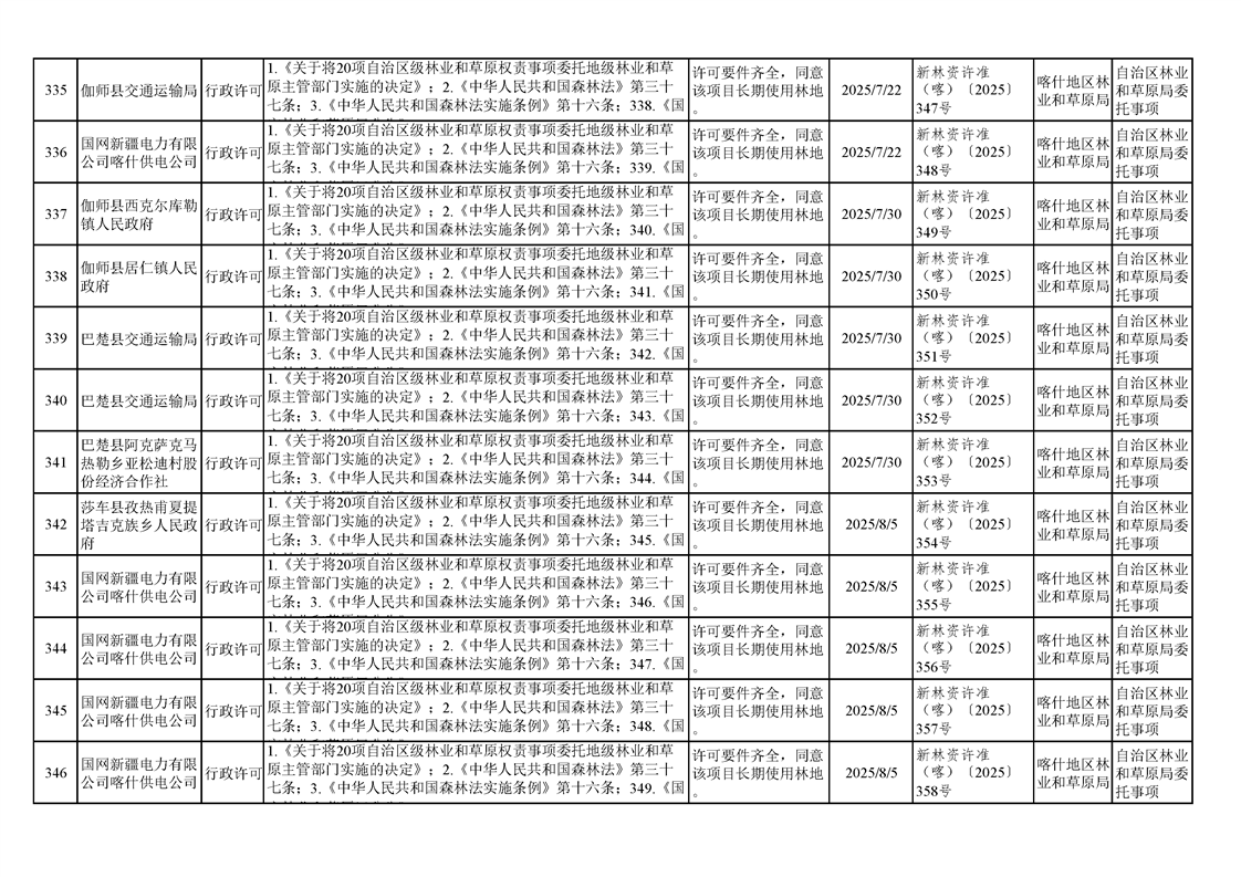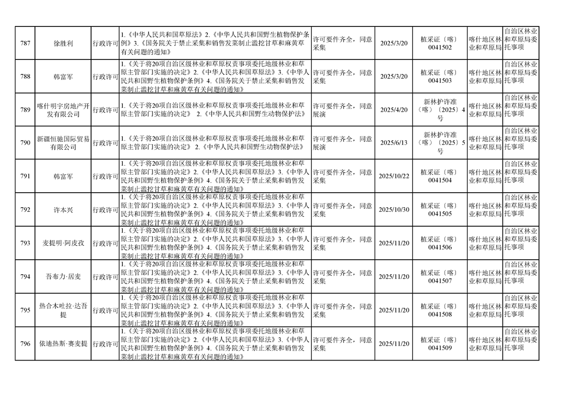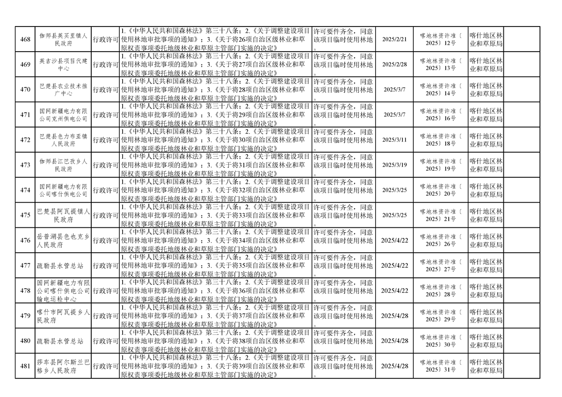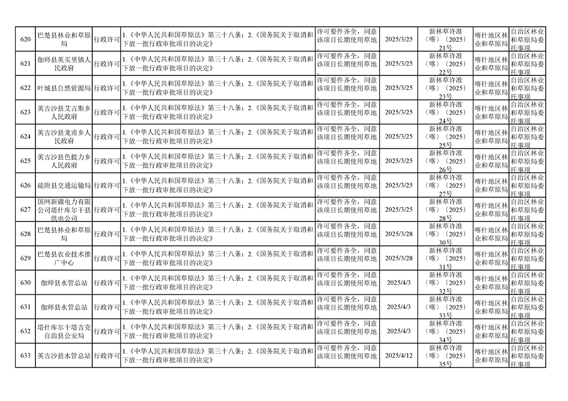 喀什地区林业和草原局 2025年度 行政执法 结果公示