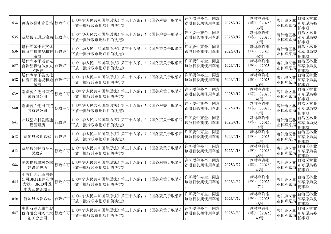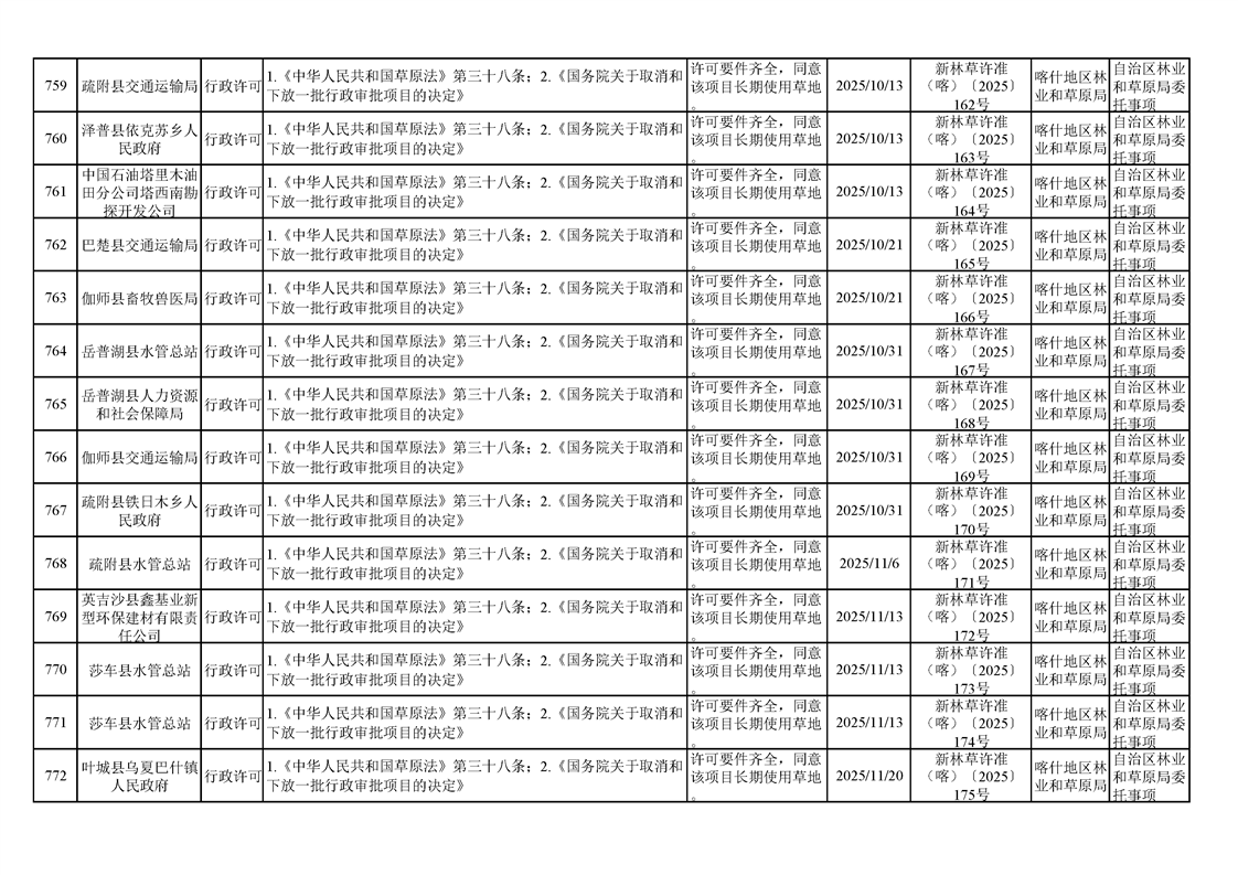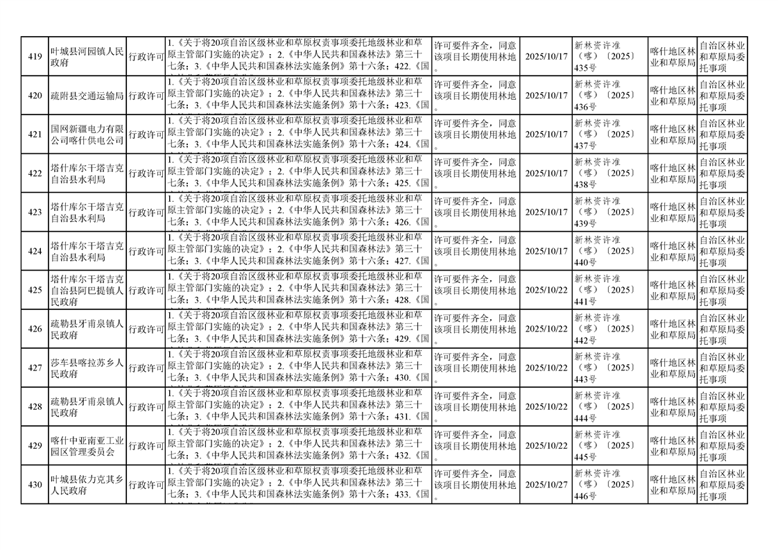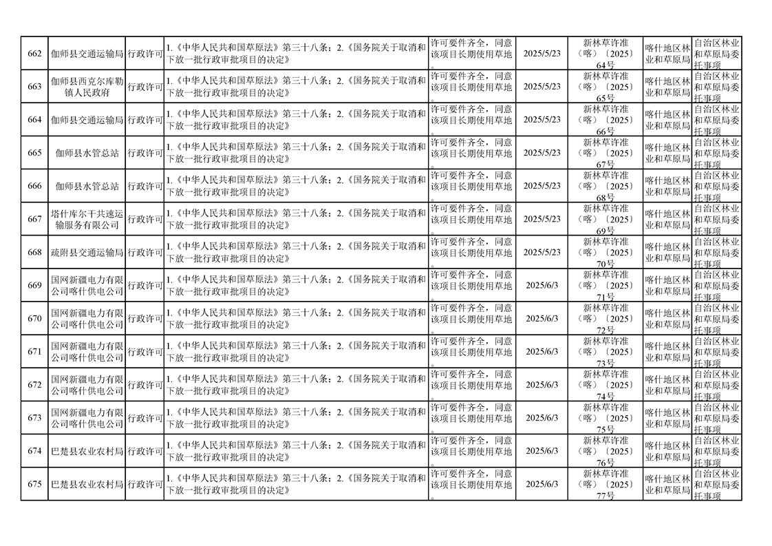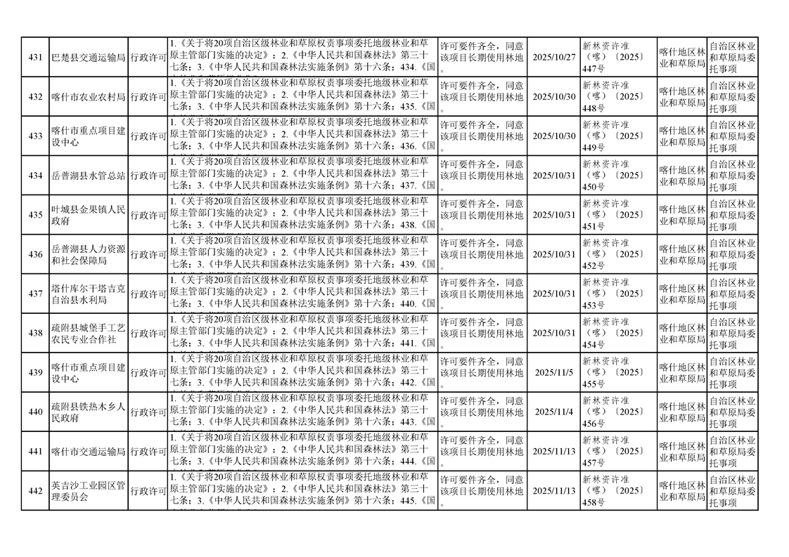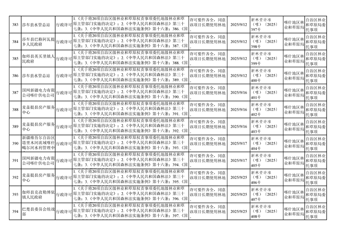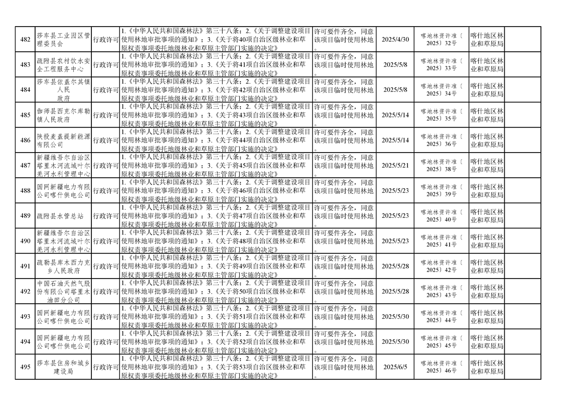 喀什地区林业和草原局 2025年度 行政执法 结果公示