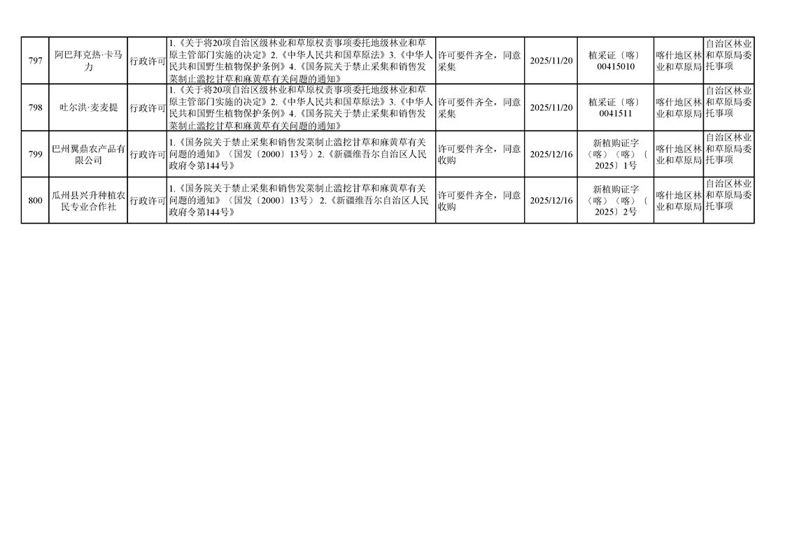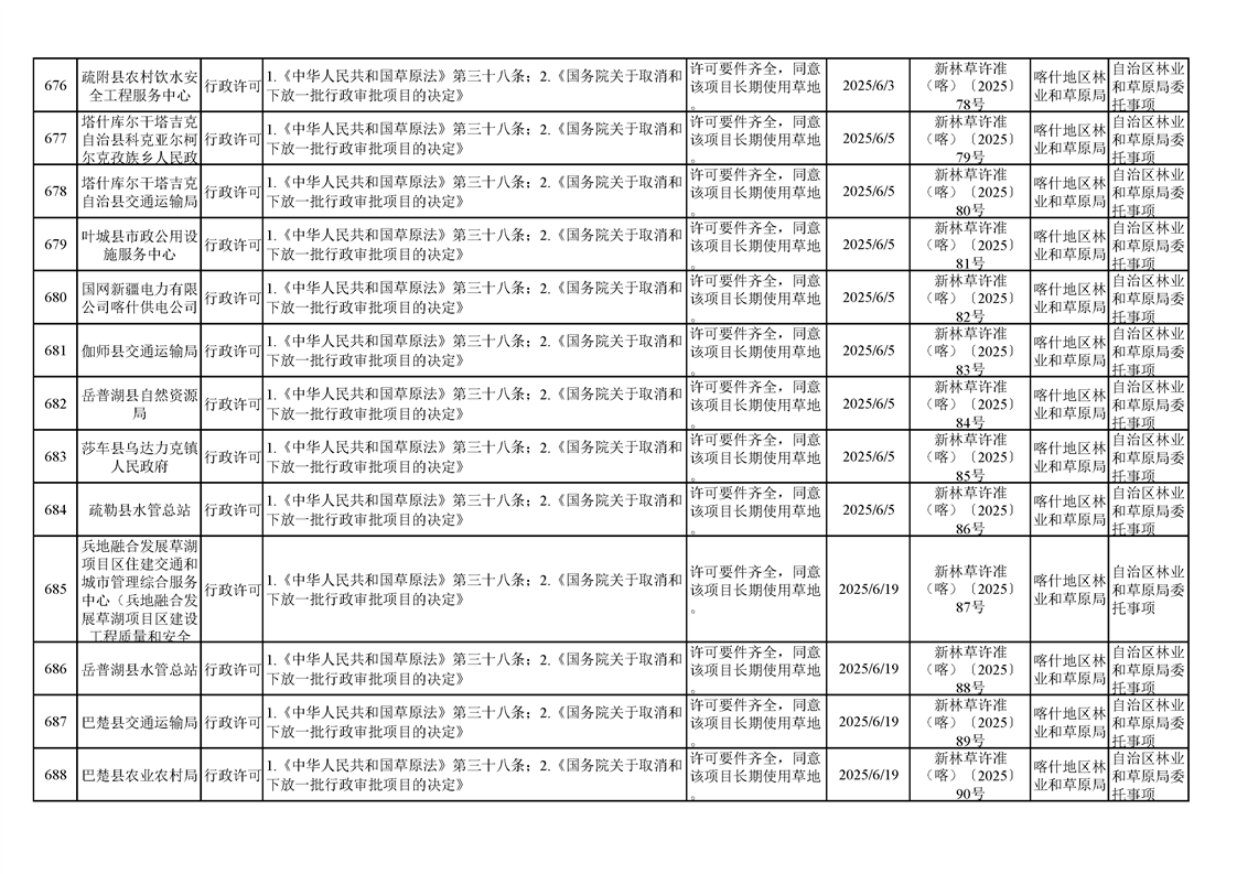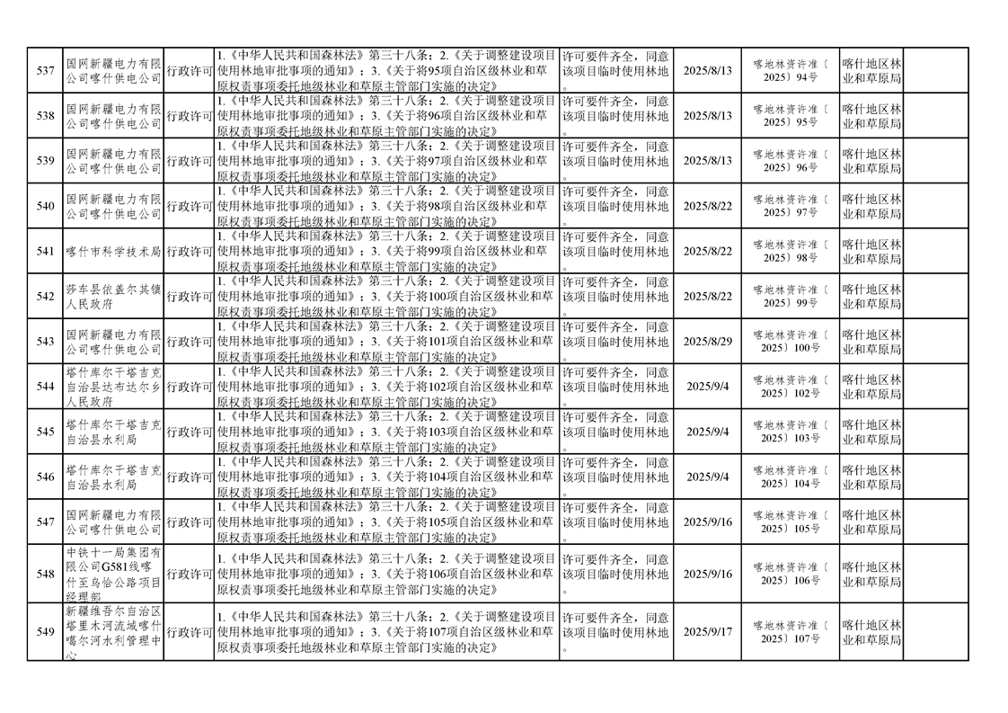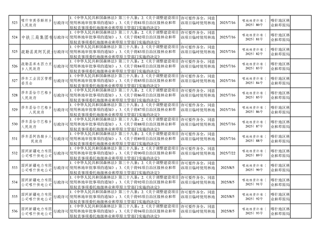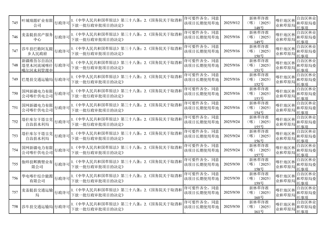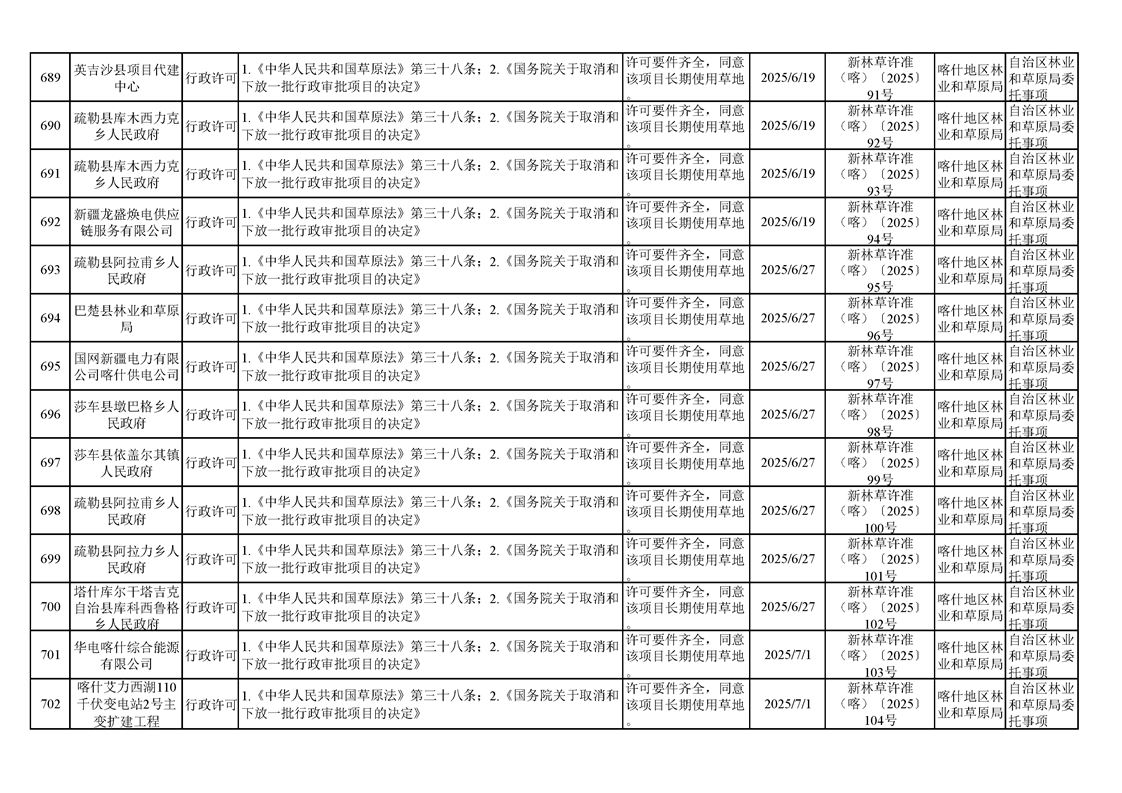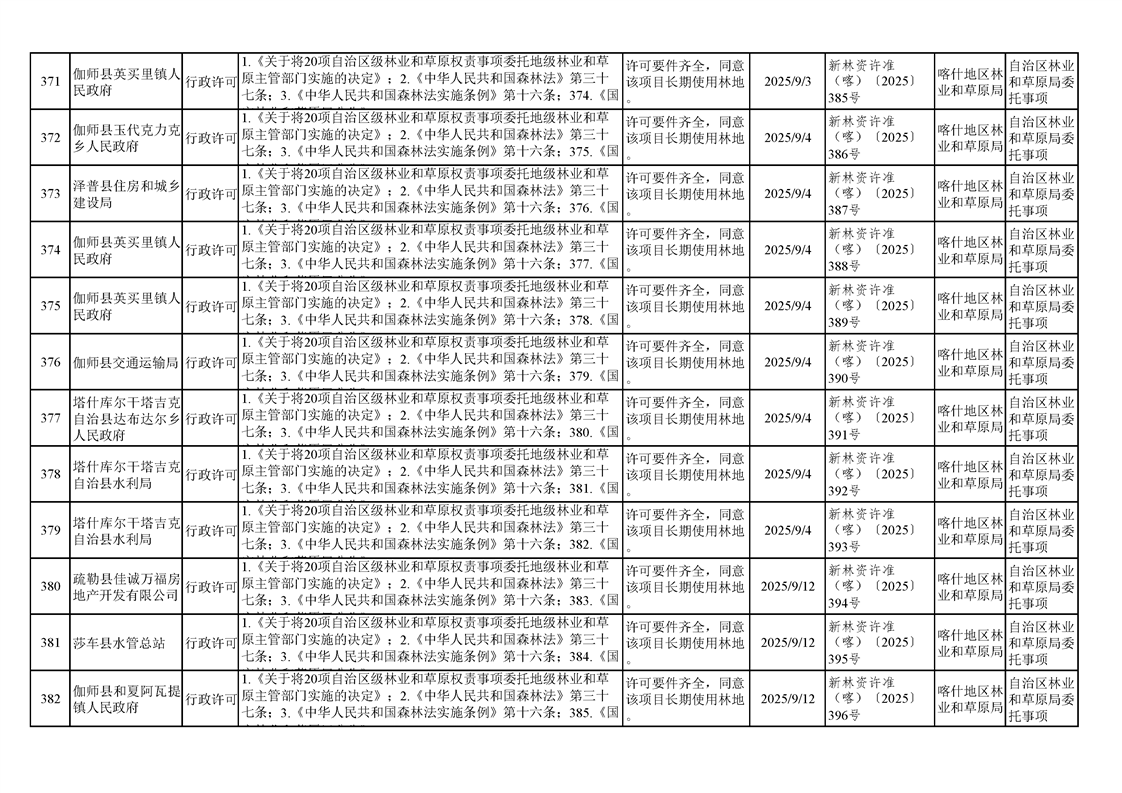 喀什地区林业和草原局 2025年度 行政执法 结果公示