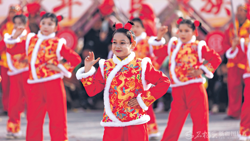 2月27日,社火队演员正在表演。当日,库车市牙哈镇文化广场热闹非凡,来自全镇24个村的社火队伍齐聚一堂,为当地群众带来一场视觉盛宴。□卡哈尔·托乎提摄