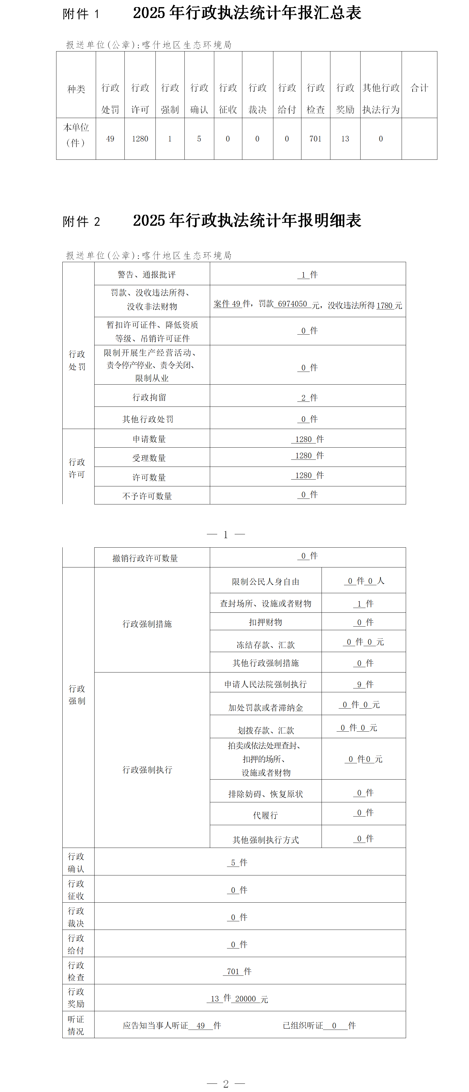 1.2025年行政执法统计年报汇总表